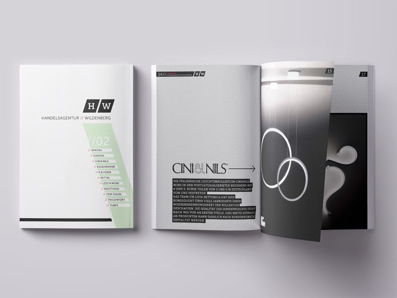 Die Handelsagentur Wildenberg aus Köln ist im Vertrieb und Marketing exclusiver Möbel- und Leuchtenkollektionen tätig. Der Kollektionskatalog erschien in mehreren Ausgaben.