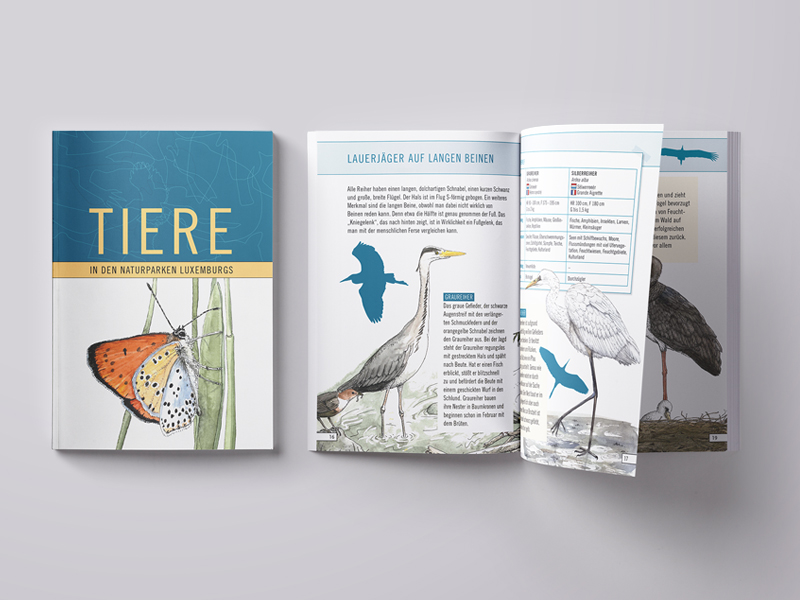Für die Aufklärung der Bevölkerung im Bereich Natur und Umwelt sind verschiedene Publikationen entstanden. Beispielweise diese Naturfibeln über Tiere und Pflanzen in den luxemburger Naturparks.